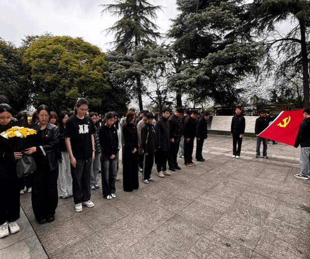 松柏凝翠,哀思悠悠。全体党员统一着装、佩戴党徽,整齐列队于庄严肃穆的向警予烈士墓前,祭扫仪式在庄重肃穆的氛围中拉开帷幕。全体人员低头肃立,集体默哀,向为民族解放、人民幸福英勇献身的革命先烈致以深切哀悼与崇高敬意。随后,党员代表缓步上前,向向警予烈士纪念碑敬献鲜花,寄托全院师生对革命先烈的无限追思。